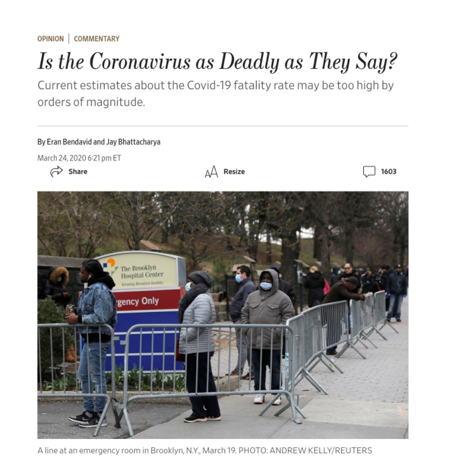 Within a month, the authors of the study raised funds, collected data, and put out the answer. The study concluded that the true infection fatality rate was 0.17%, a tiny fraction of the WHO estimate and only slightly higher than the flu at 0.1%.