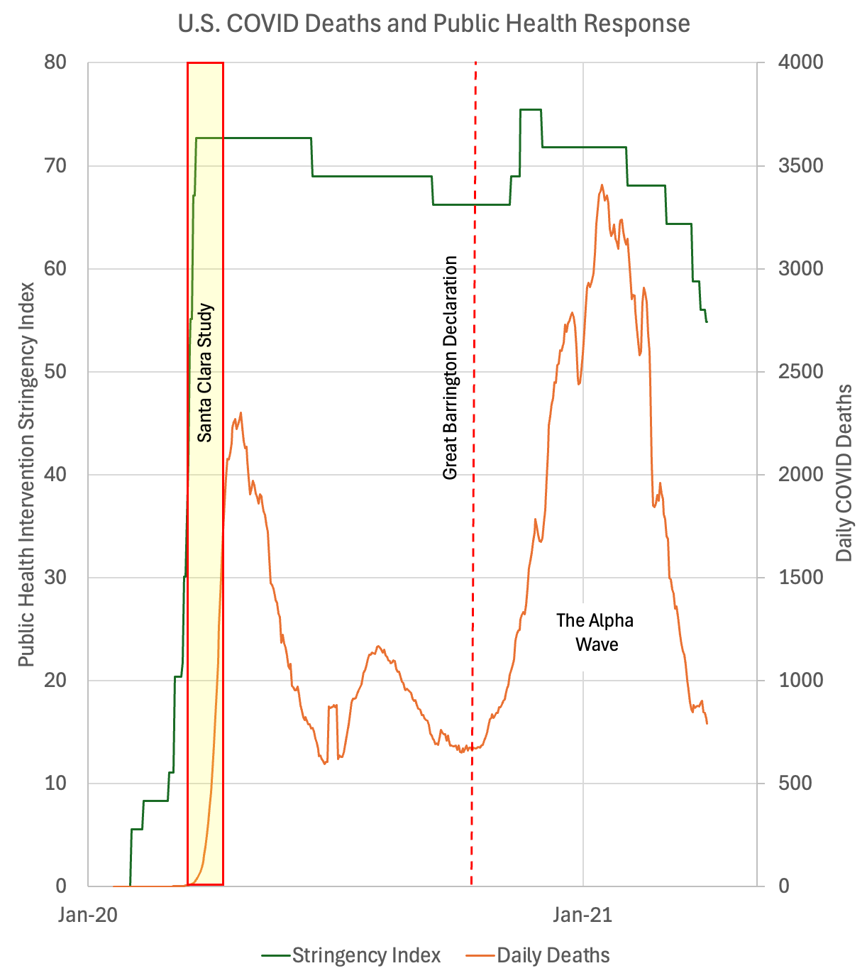 The lead author of the Santa Clara study would later co-author the Great Barrington Declaration in October 2020, which argued for “focused protection” — shielding the elderly while the virus ran its course in the broader population as they returned to “normal”. What began as an estimate of infection fatality rate evolved into a coherent alternative public health philosophy.